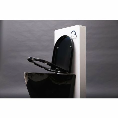 Le siège et l’ abattant WC, livrés avec l’article, se ferment en douceur et sans faire de bruit. Le module sanitaire figurant sur la photo ne fait pas partie de la livraison mais peut-être commandé sur notre site en noir ou en blanc.