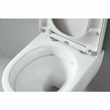 - WC suspendu sans bord de chasse d’eau, fermeture douce